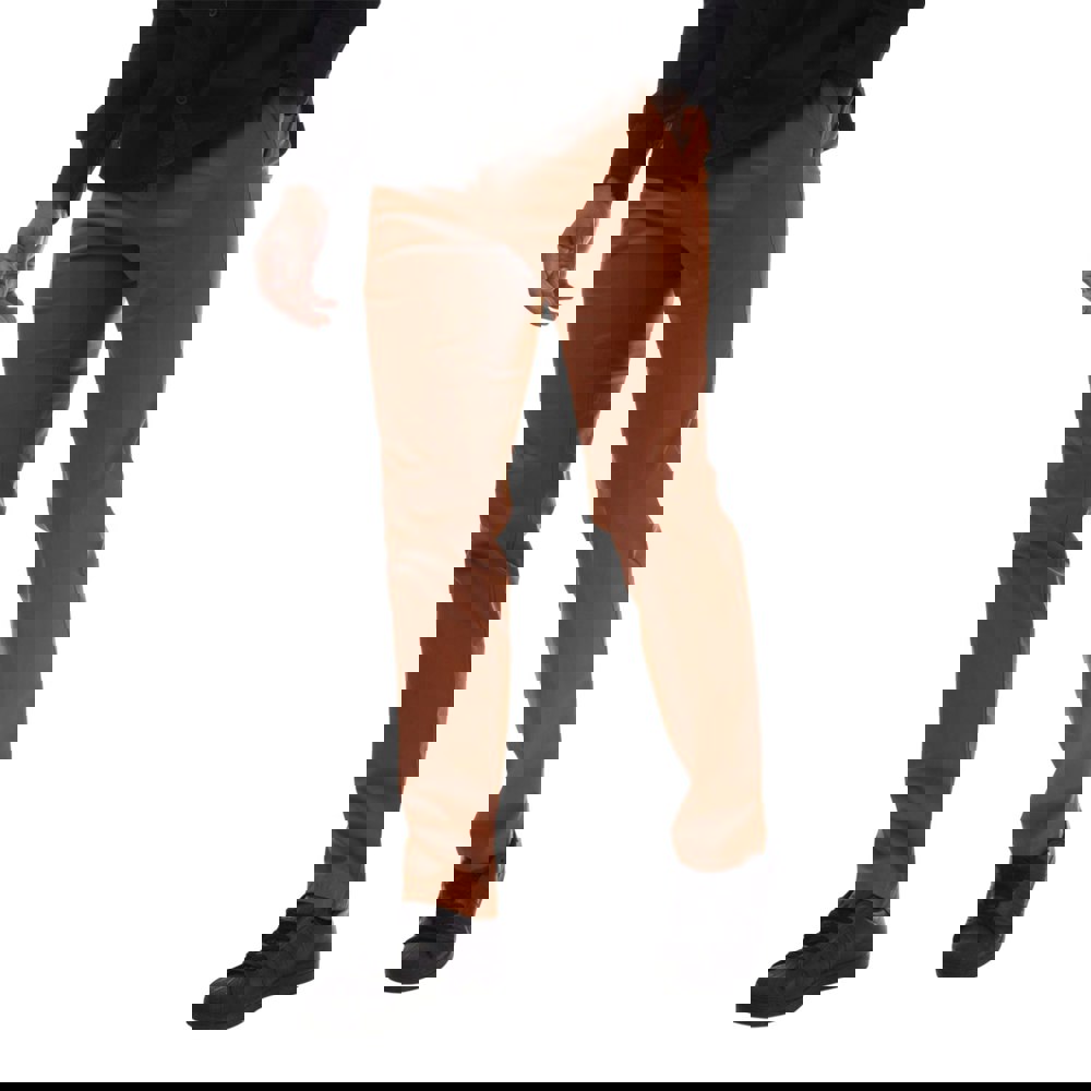 A button fastening and zip fly provide a classic closure. Storage is kept simple with two side pockets and a single back pocket, maintaining a neat profile from every angle.