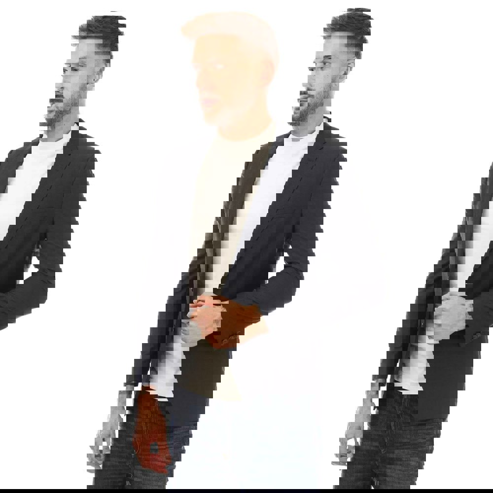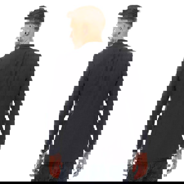 This dark blue blazer is made from a blend of 74% virgin wool, 17% polyester and 9% polyamide. It has a plain finish and a regular fit, suited to smart dressing.
