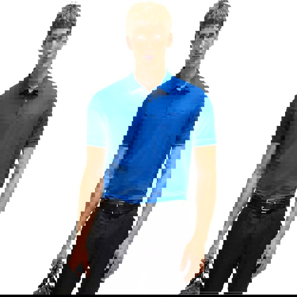 This Hugo Boss Pallas polo shirt is made from 100% cotton in piqué fabric. It comes in blue with a plain finish and an embroidered logo for a clean, understated look. A flat knit, turn-down collar and short sleeves keep the silhouette classic, while ribbed cuffs add a neat edge.