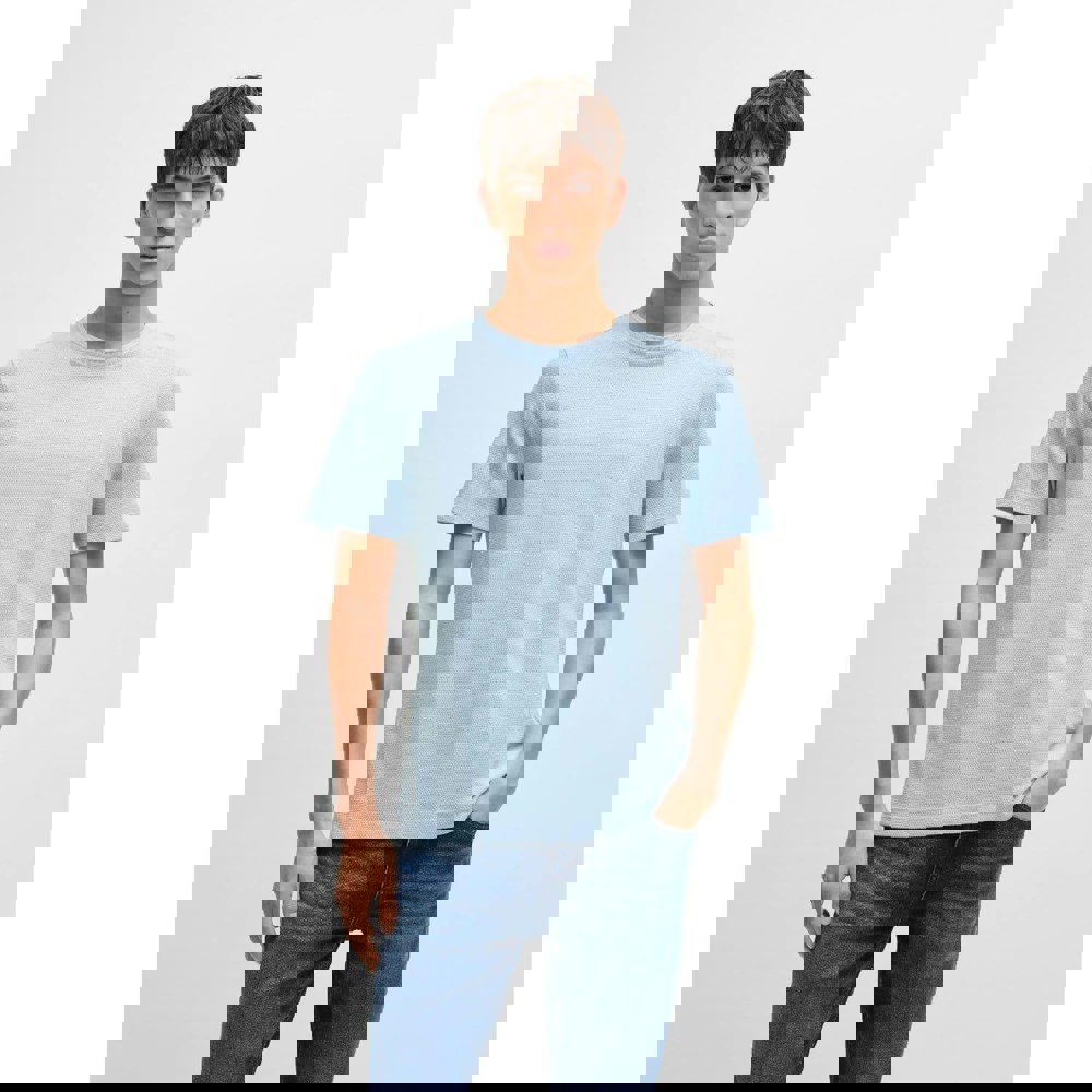 This Hugo Boss Tiburt 240 T-shirt comes in blue with a printed design and a regular fit. Made from a jacquard mouliné knit yarn blend of 75% cotton and 25% polyester, it offers a textured finish suited to everyday wear.