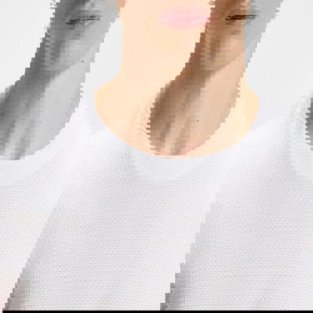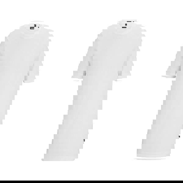 The Hugo Boss Tiburt 240 T-shirt comes in white with a printed design and a regular fit. Made from a cotton and polyester blend, it uses jacquard mouliné knit yarn for a textured finish. A ribbed crew neckline and short sleeves keep the look clean and easy to wear.