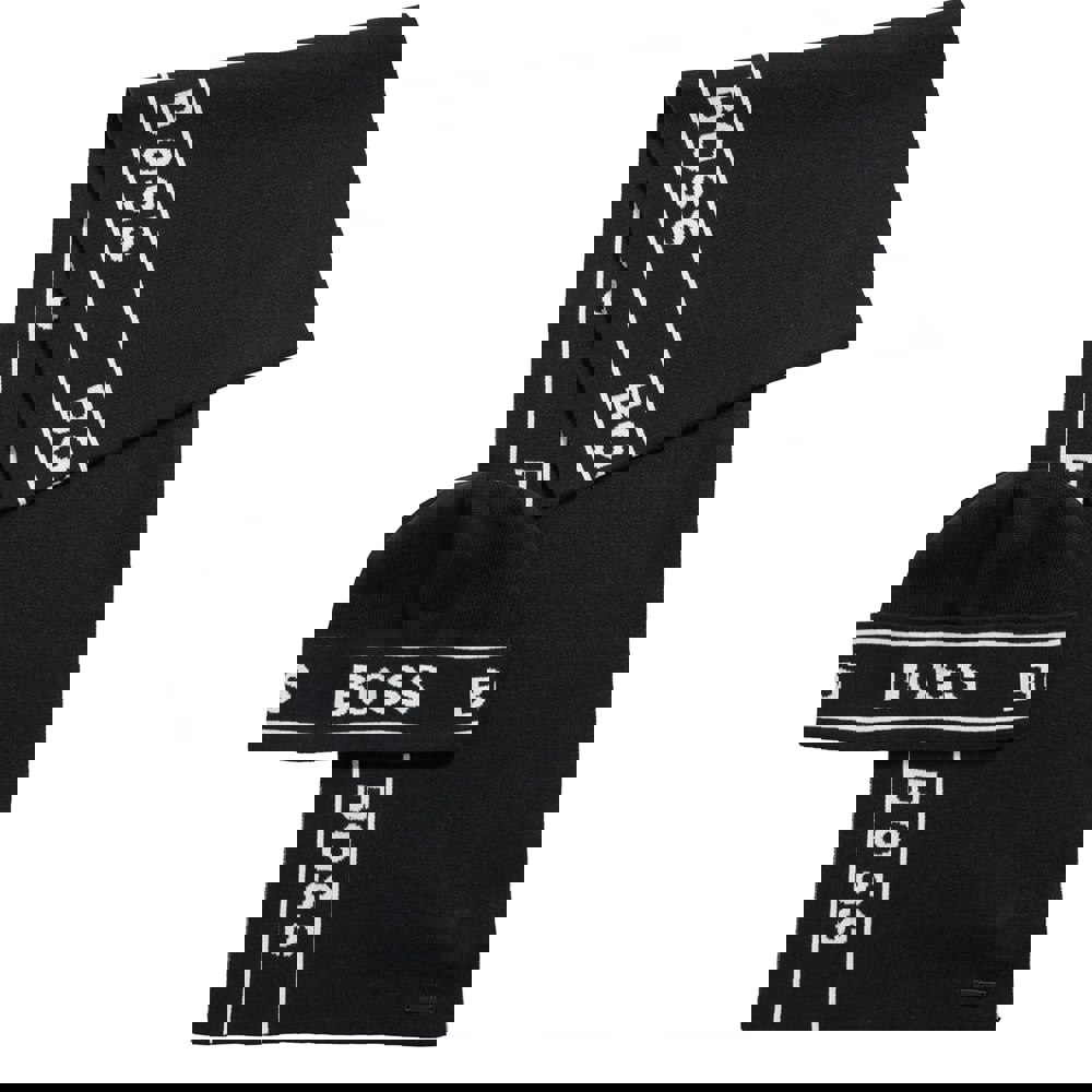 The BOSS Ulfino Hat and Scarf Set is a coordinated accessory set designed to complement everyday outfits. Presented in black, it offers a clean, understated look that works well for regular wear and easy styling.