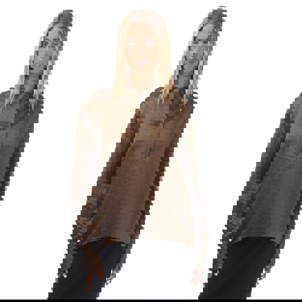Long sleeves and buttoned cuffs add structure, while a hidden button placket keeps the front neat. Suitable for everyday wear and easy to style with tailored or casual separates.