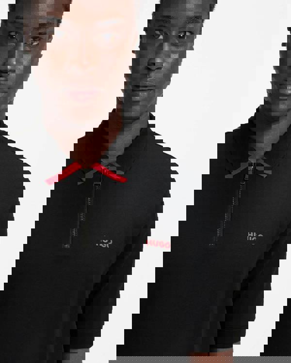 Finished in black, the zipped placket gives a modern alternative to traditional button fastenings, while a contrast logo adds a crisp point of detail. An easy choice for everyday wear when a polo feels more polished than a T-shirt.