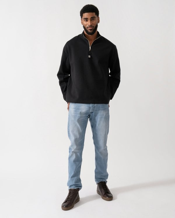 Elevate your casual wardrobe with the HUGO Danovotop Sweatshirt in classic black. Designed for effortless style, this contemporary layer features a sleek quarter-zip neckline, adding a refined edge to your everyday look. Crafted from a soft and durable cotton blend, it delivers lasting comfort without compromising on style.