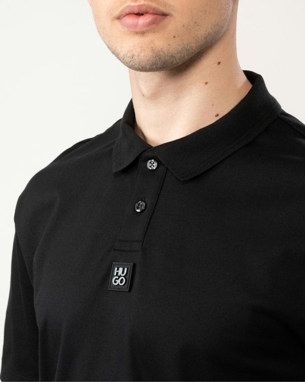 HUGO Deabono Mens Interlock Cotton Polo Shirt with Stacked Logo in Black 001