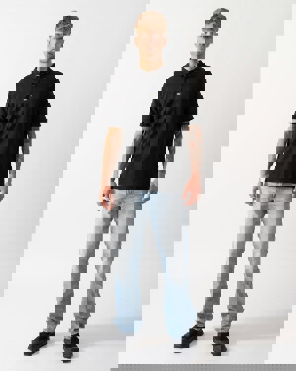 HUGO Deabono Mens Interlock Cotton Polo Shirt with Stacked Logo in Black 002