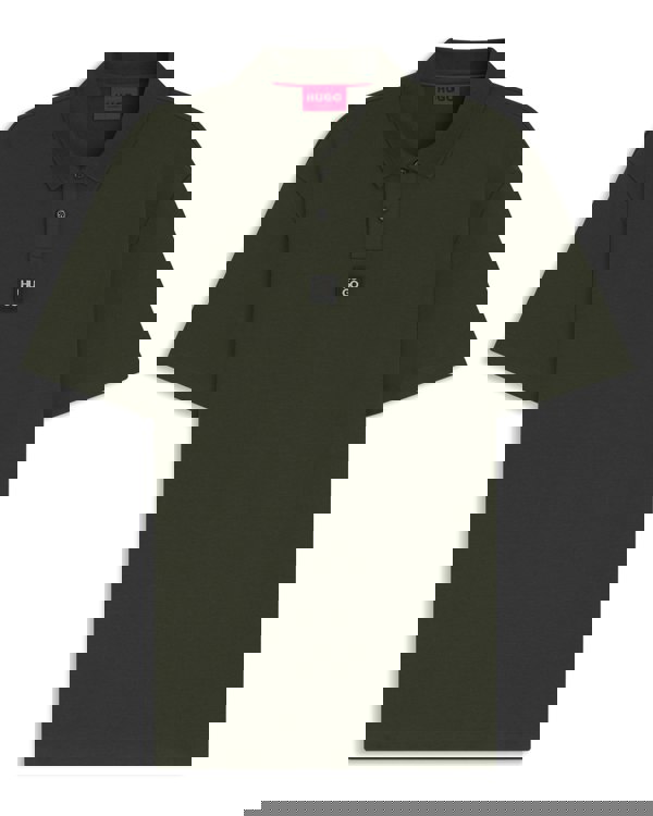 HUGO Deabono Mens Interlock Cotton Polo Shirt with Stacked Logo in Dark Green 309