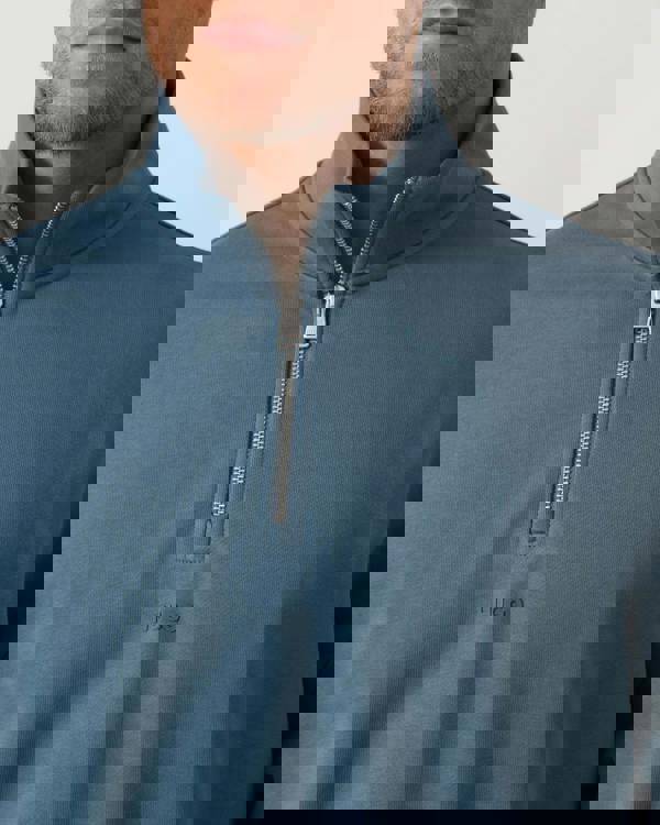 Layer up in comfort with the relaxed fit and cotton terry of this essential HUGO Menswear sweatshirt. Zip-neck collar. HD logo print.