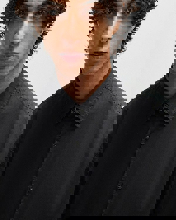 An essential shirt, trimmed with a red logo patch, by HUGO Menswear. This slim-fit piece comes in stretch canvas for comfort in movement.