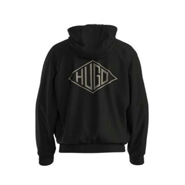 The Benji windbreaker from HUGO is made from 100% recycled polyamide with a 100% polyester lining. Finished in black, it has a printed logo design and a hooded neckline with a sew-on hood and toggle adjuster. Long sleeves are paired with elasticated cuffs and an elasticated hem for a neat outline.