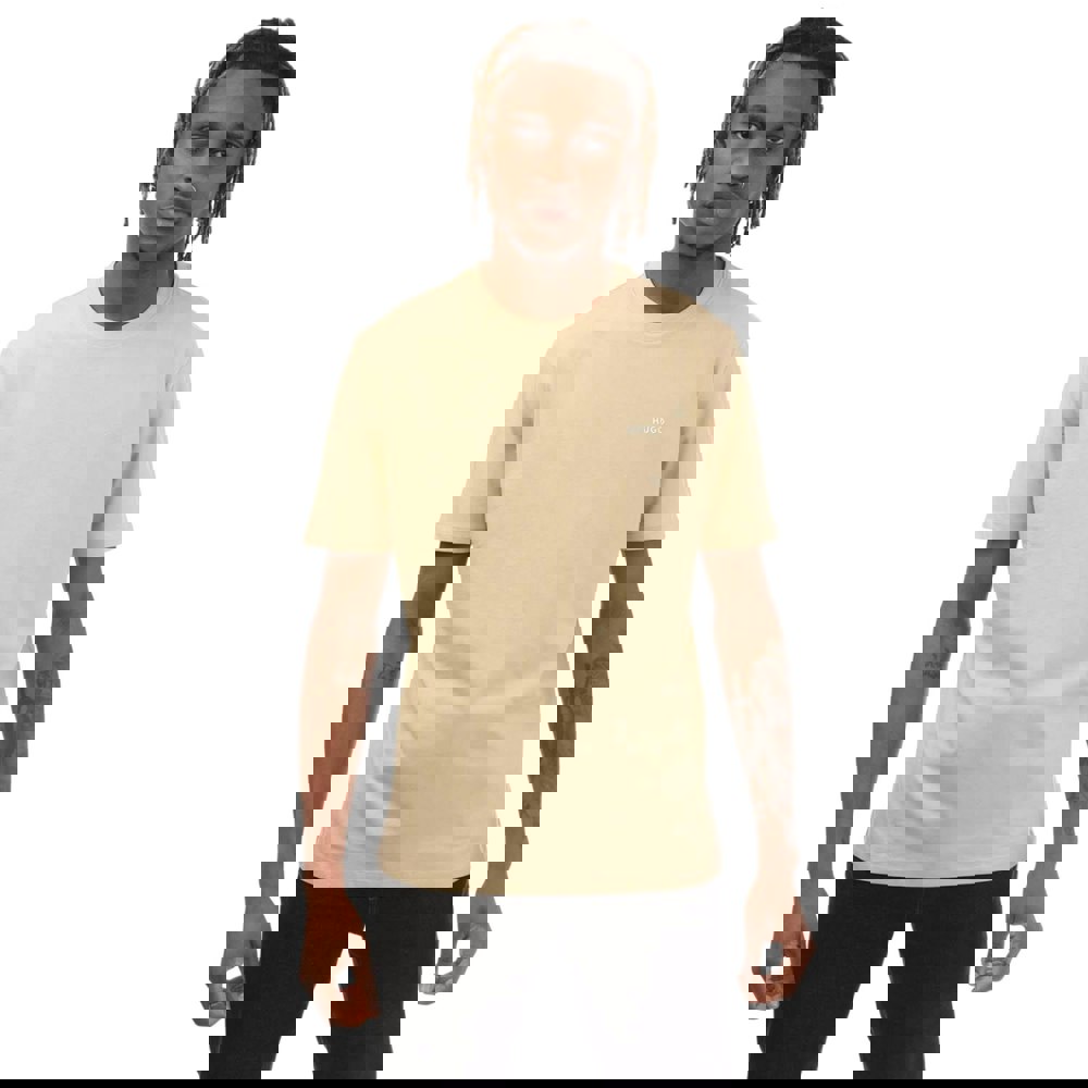 Crafted from 100% cotton, this Hugo T-shirt keeps the look clean with a plain finish and logo detail. It is cut in a regular fit and styled with a ribbed crew neckline and short sleeves, making it a straightforward option for everyday wear.