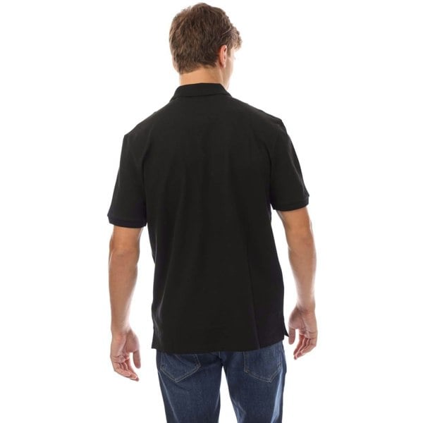 This men’s polo shirt is made from 100% cotton and finished in black with a plain design and logo detail. A ribbed polo neckline and ribbed cuffs give a clean, structured look, while the short sleeves keep the silhouette classic and easy to wear.