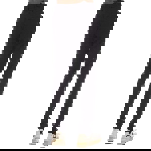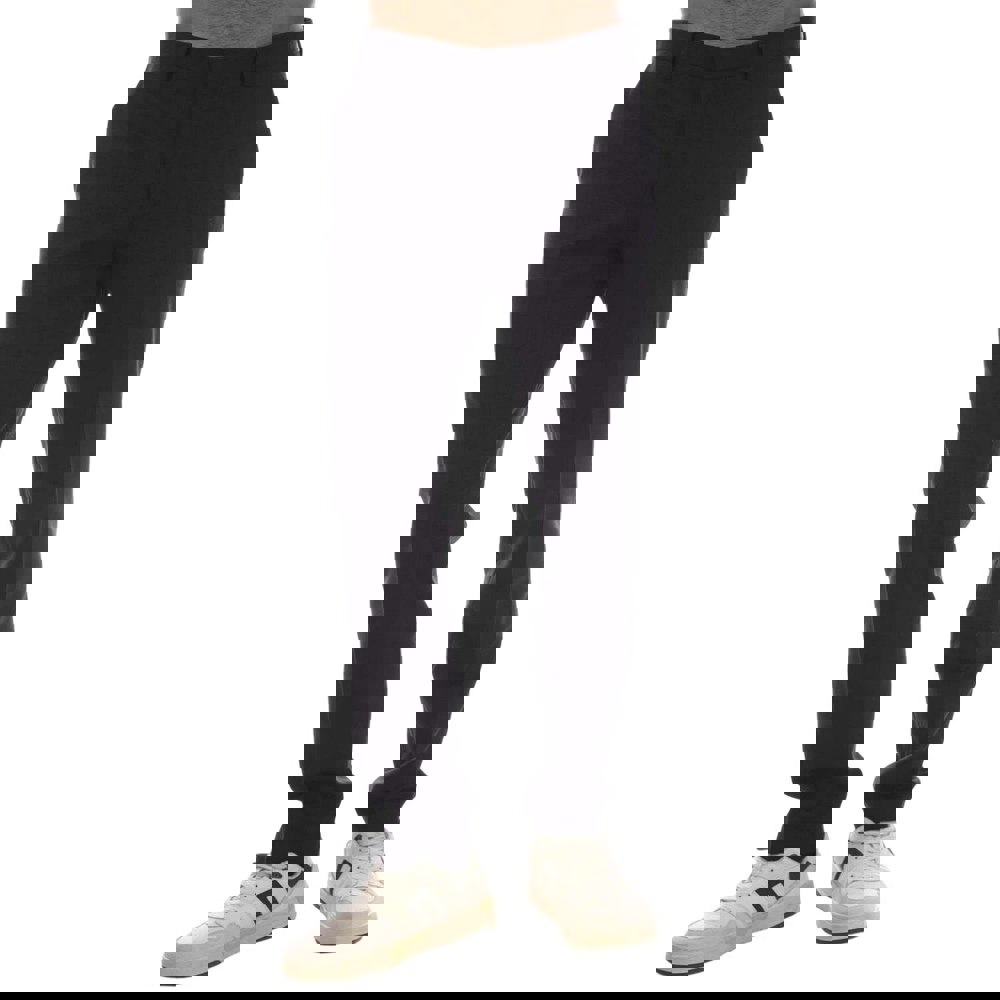 A slim fit and flat front create a streamlined profile, while belt loops allow for styling with a belt. The front fastening combines a hook closure with a zip fly, and two side pockets provide practical storage.