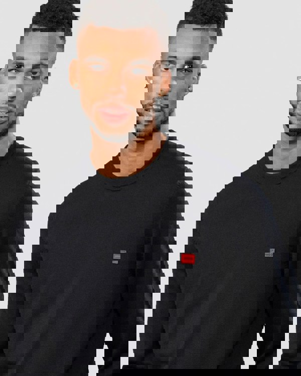 Featuring a woven logo label in signature red at the left chest, this super-soft sweater by HUGO Menswear is cut to a regular fit.