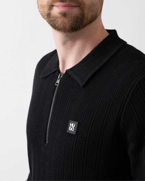 Discover designer men's jumpers with HUGO's Sastoro Men's 1/4 Zip Jumper in Black 001