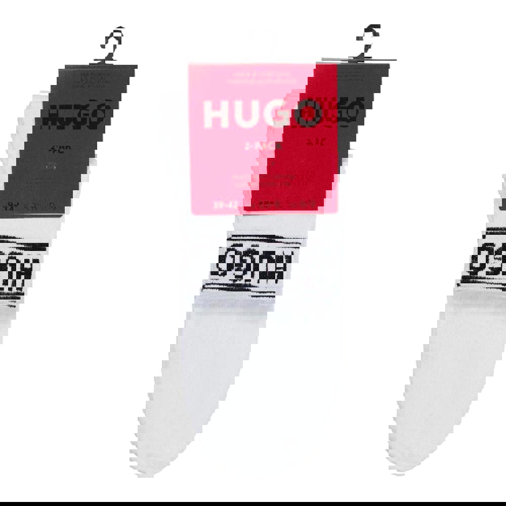 Refresh everyday essentials with this pack of two unisex adult socks from HUGO. Made from a cotton-rich blend with polyamide and elastane, they use yarn fabric with added stretch for comfortable wear. The ankle cut is finished with a cuffed top and a contrast logo detail for a clean, modern look.
