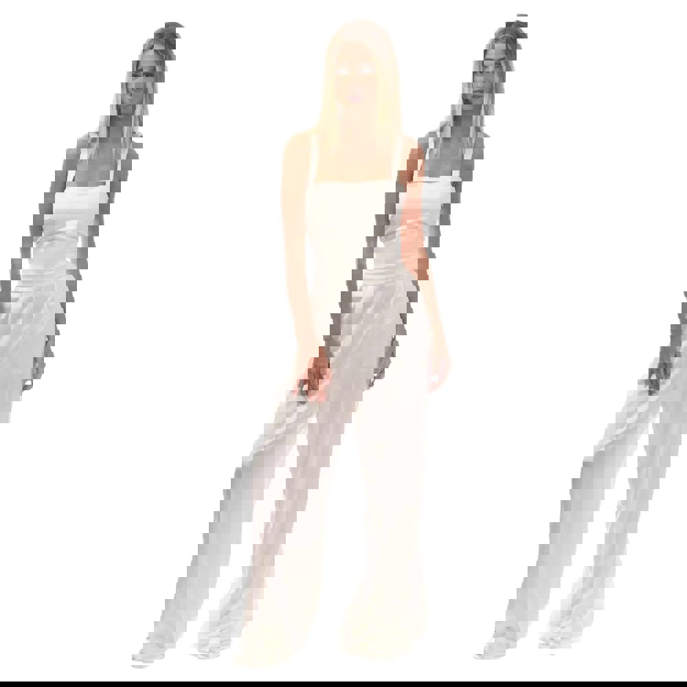 Hugo Kagelinara-1 jumpsuit in natural, made from 70% recycled polyester and 30% polyester. This sleeveless style has a square neckline and wide straps, finished with a plain design and logo detail.