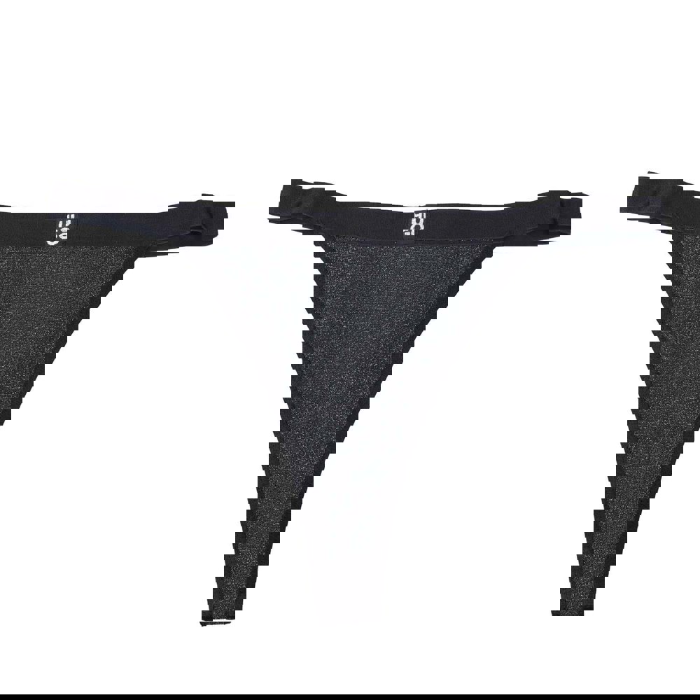 This women’s lurex thong is made from a blend of polyamide, polyester and elastane, with a mesh construction. It comes in black with a plain finish and logo detailing.