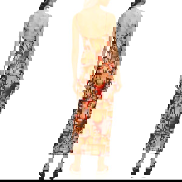 The Hugo Nalinda dress is crafted in mesh with a multicoloured collage print. Cut to a slim fit, it has a square neckline and slender spaghetti straps for a clean, minimal finish. The sleeveless shape and open back keep the silhouette light, while a side slit adds movement through the midi-length skirt.