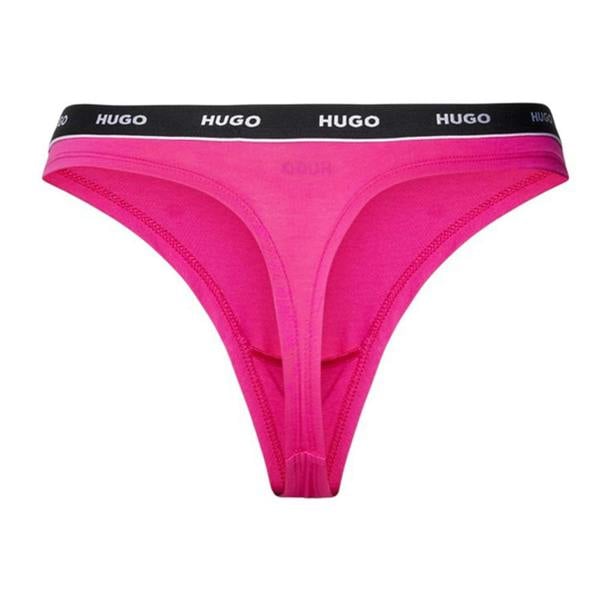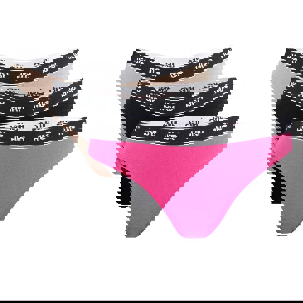 This pack of three women’s thongs comes in pink, black and beige. Made from a cotton blend with elastane, polyamide and polyester, each pair uses jersey stretch material for a close, flexible feel. A logo design and branded contrast waistband complete the look, keeping the finish clean and recognisable.