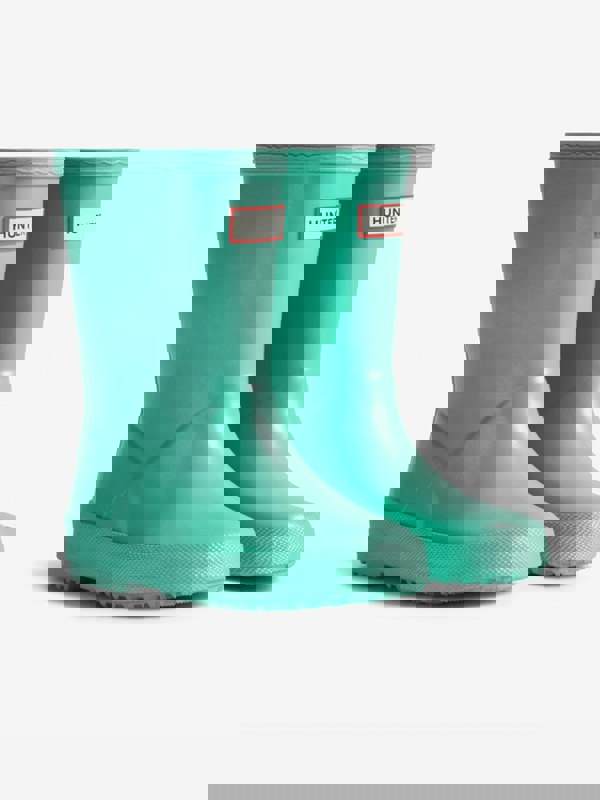 Hunter Kids First Nebula Wellington Boots in blue bring a fresh update to the brand’s vintage archives. Made from natural rubber, this unisex style is fully waterproof for wet-weather wear. A deeper textured zigzag tread supports reduced slipping, while the insole combines post-consumer recycled polyester with latex sponge foam. Inside, the lining uses post-consumer recycled polyester for a consistent finish.