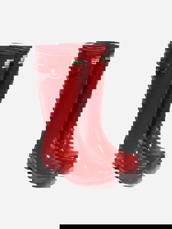 Hunter Kids Original Gloss Wellington Boots in red bring a bold, glossy finish to a classic wellington shape. Made for unisex wear, this pair adds a standout look while keeping the practical purpose of a waterproof boot.