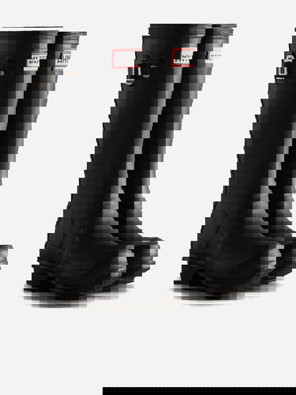 Hunter Kids Original Wellington Boots in black bring the brand’s iconic Original Tall Boot shape to a junior size. This unisex style is waterproof and handcrafted from natural rubber, with a 100% recycled polyester lining. Reflective patches add a practical finishing detail, while the Hunter Original tread completes the classic look.