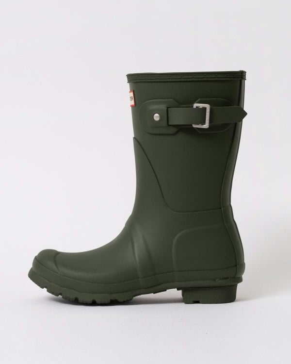 Perfect for wet weather conditions this women's Wellington Boot is a shorter version of the iconic Hunter Original Tall Boot. Formed of natural rubber, each boot is handcrafted and assembled over three days before being vulcanised for superior protection. Featuring the Hunter Original tread pattern, and a comfortable polyester lining, this black welly boot is a rainy-day necessity.