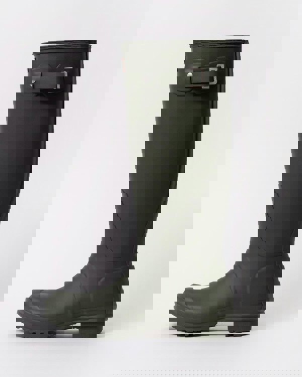 Perfect for wet weather conditions, this women's Wellington Boot has been at the heart of the Hunter Original brand since its introduction in 1956. Formed of natural rubber, each pair is made from 28 hand-cut parts and assembled over three days on an aluminium last bespoke to Hunter, before being vulcanised for superior protection. Featuring the Hunter Original tread pattern, and a comfortable polyester lining, these tall black welly boots are a rainy-day necessity.