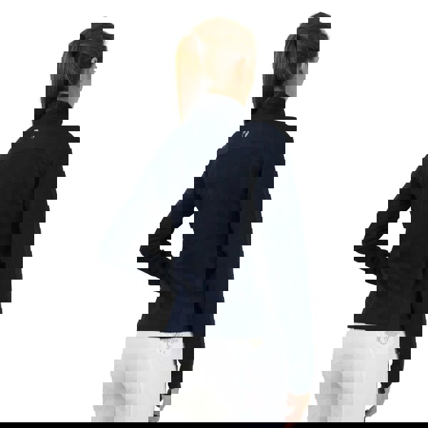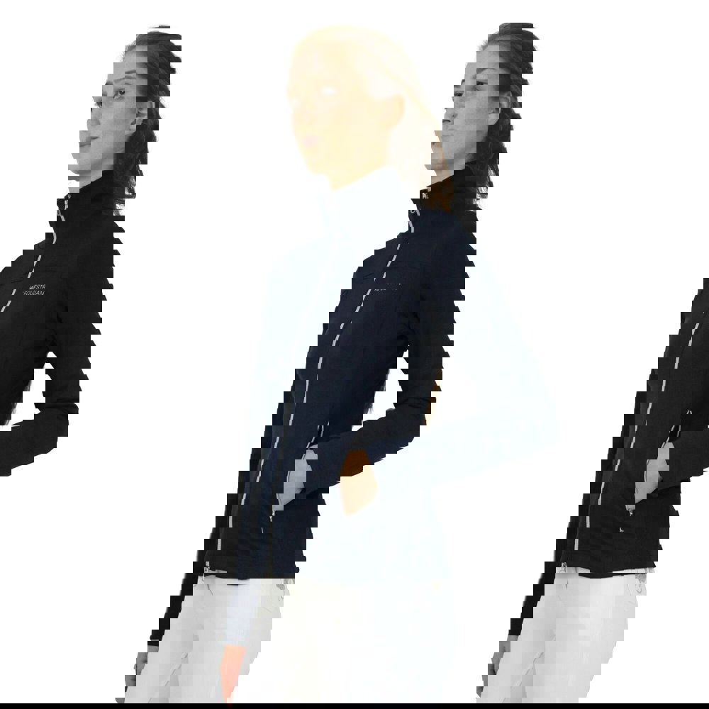 This women’s Synergy Flex jacket comes in navy with a long-sleeved cut and a zip neck. The fabric uses 4 way stretch and lightweight technology, with quick dry performance. Mesh panels add breathability, while emblem and logo detailing completes the design.