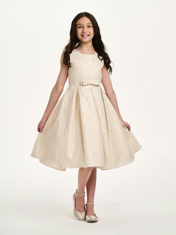 The iAMe Girls Golden Glow Dress in gold forms part of the SS2025 collection. It comes in a radiant gold hue with a shimmering finish that stands out for special occasions.
