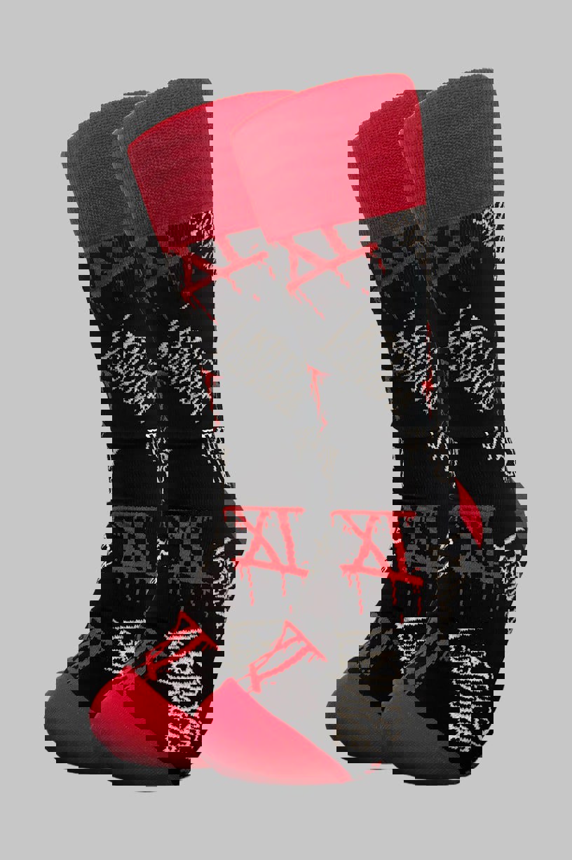 Official licensed Ice Nine Kills Unisex Ankle Socks featuring the 'Logos' design motif. High quality Ankle Socks available in a black colourway. These premium quality, colourful, all-over pattern cotton rich woven socks are guaranteed to stand out in the crowd.
