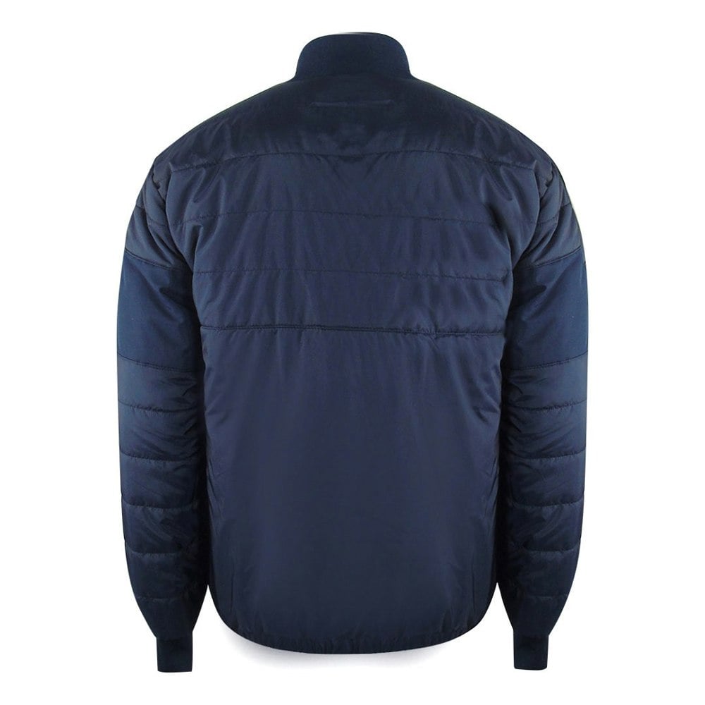 Embrace the chilly weather in style with this navy blue padded bomber jacket that will keep you warm and protected wherever you go.