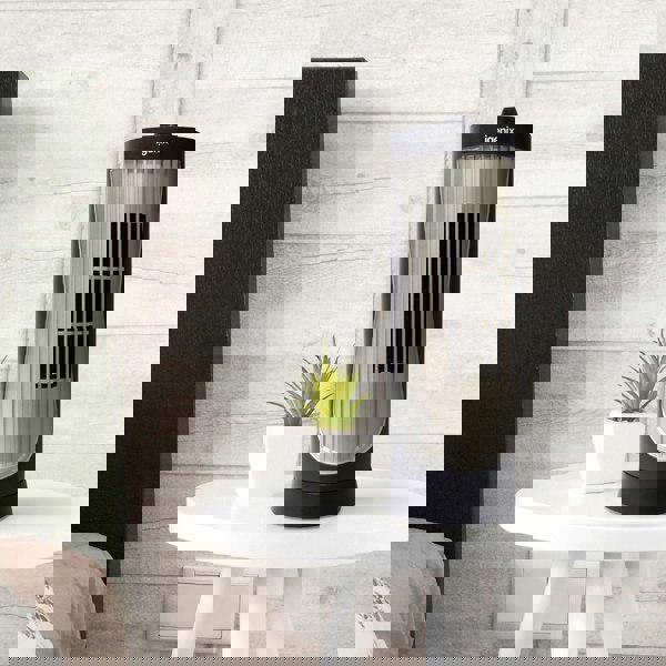 The Igenix DF0020 Mini Tower Fan is a 12 inch black and silver tower fan