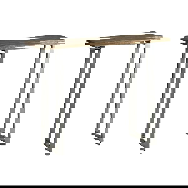 A beautiful handcrafted console table that will add character to your hallway. The piece comes lightly stained in a grey, matte finish, with a solid metal base. The uniqueness of this range is given by the variations in the wood, together with the natural knots and slight cracks which are part of its character.