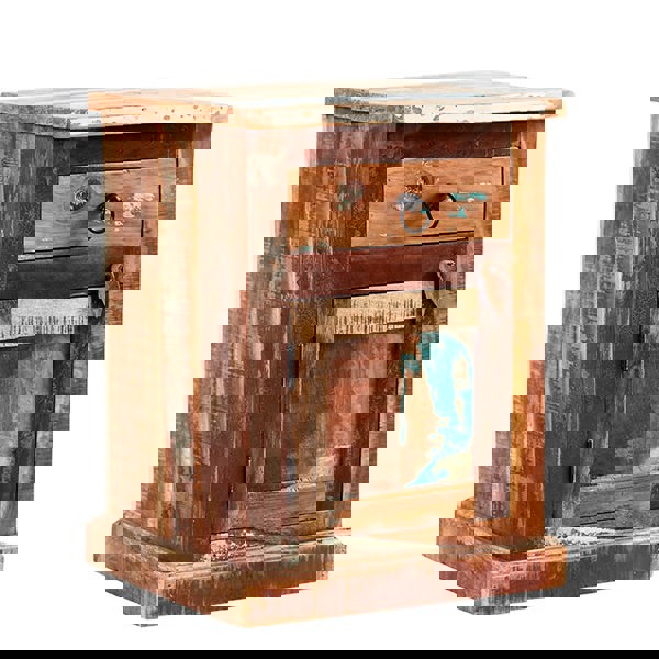 Introducing the Dahila Reclaimed Boat Bedside Table, a unique and captivating addition to any bedroom or living space. Crafted from authentic reclaimed wood sourced from decommissioned boats, this table is not only an eco-friendly choice but also a testament to the rich maritime history. The Dahila Bedside Table brings a sense of adventure and character to your interior, making it an intriguing conversation starter.