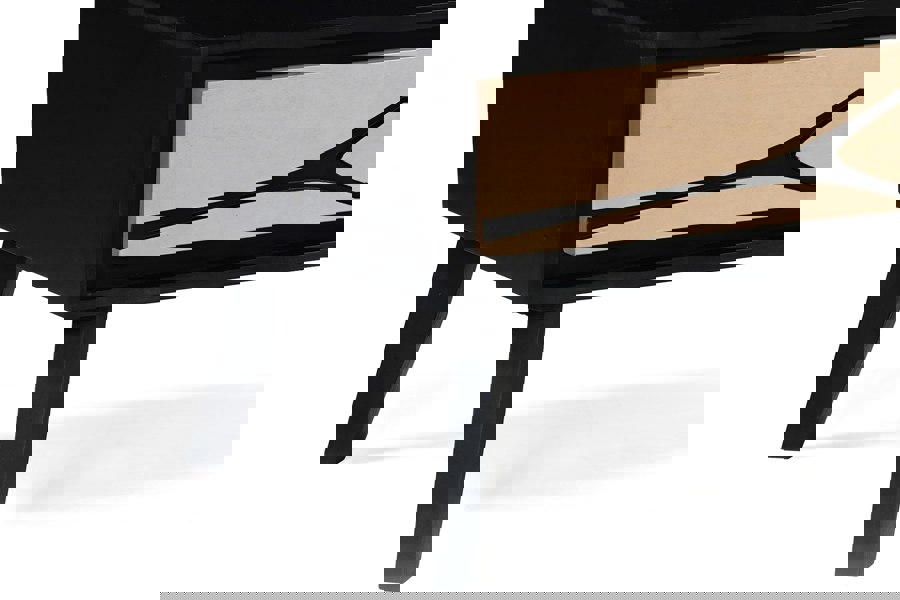 The drawers are finished in a natural wood grain and are adorned with a captivating black abstract inlay, creating a unique and artistic statement. With its spacious surface and two convenient drawers, it offers the perfect balance of a place for drinks and books, and hidden storage for remote controls, magazines, and other essentials. The Dusk 2 Drawer Coffee Table is supported by sturdy, tapered legs and requires only partial assembly, making it a stylish and convenient addition to your home.