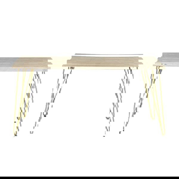 Designed and built for the modern yet elegant look this dining table from the Barbuto Light Mango range will be greatly admired. Made from solid Mango wood throughout and metal legs, the natural grain of the wood is enhanced by eye catching gold embossed detailing to the top and the metal is finished in a complementary gold coating. All these features provide an elegant look with a durable design to withstand the demands made from this dining table. Choose from a large selection of our dining chairs to compliment this table for a look that is tailor made for your taste. Matching items are available in this range to provide a stylish look and feel to your home.