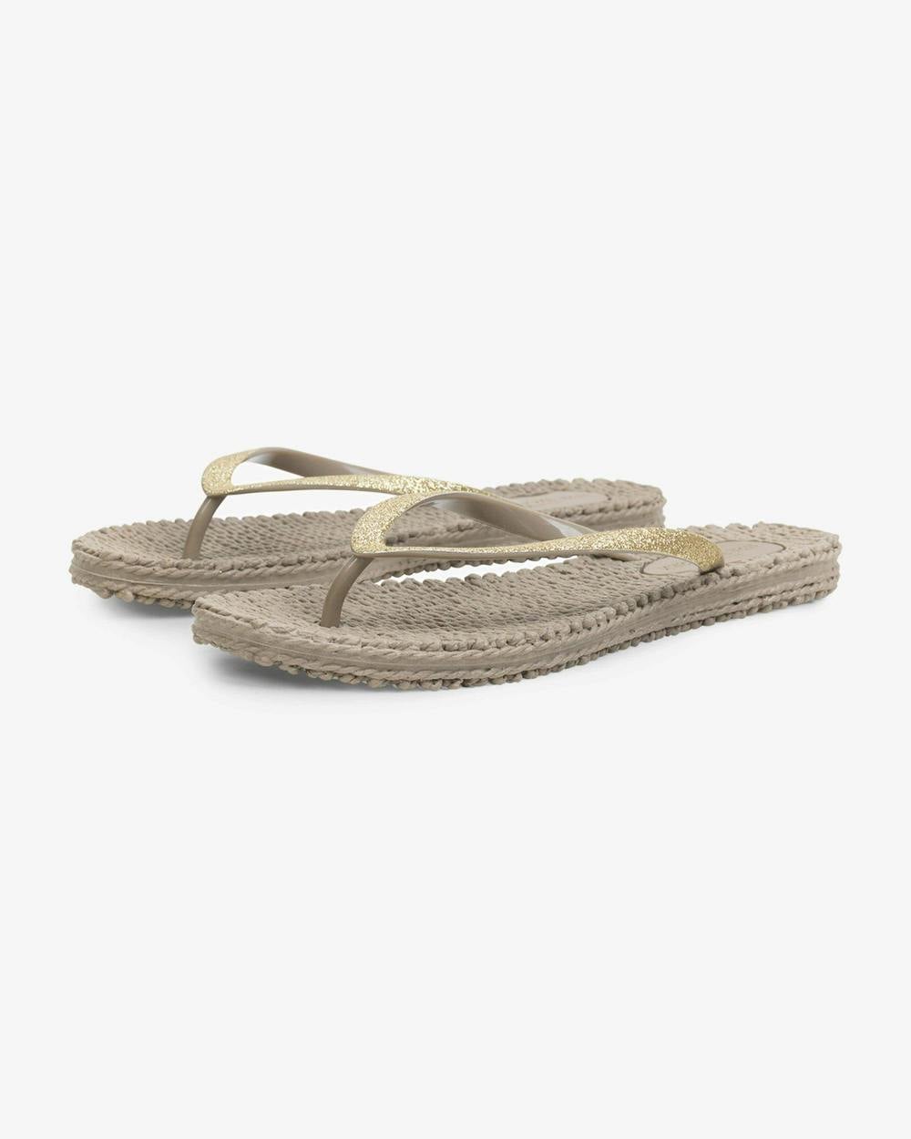 These Cheerful flip flops are made of air rubber and induced air to make them lightweight and flexible. They are extremely comfortable with their patterned insole, creating a gentle massage effect. The straps are decorated with soft glimmer. Perfect for a walk on the beach or any summery occasion because of their comfortable fit and great appearance.