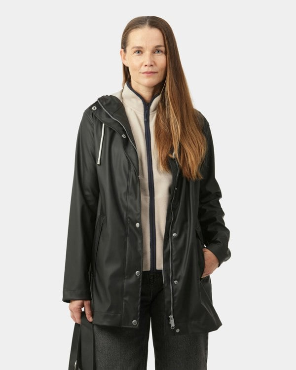 A straight-fit waterproof raincoat crafted from durable, lightweight rubberized PU-coated fabric. Tailored with welded seams for full rain protection and a tricot-backed interior for added comfort. The adjustable drawstring hood ensures enhanced protection, while underarm eyelets improve breathability for added comfort in challenging weather. Offering reliable weather protection with a waterproof rating of 5,000 mm.
