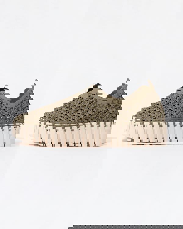 The iconic Tulip shoe with laser cut pattern. Crafted with an upper of recycled microfiber and resting on the flexible Tulip platform outsole. Stitched with matching colored recycled thread using no glue. Inside, the soft insole provides comfort through added padding and support.