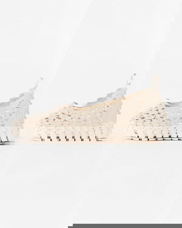 Ilse Jacobsen reworks the Tulip3479 into a refined ballerina shoe, finished in Kit Pearled Ivory with an embroidered Tulip pattern. Light and easy to wear, it brings a polished look to everyday outfits while staying true to the brand’s clean, considered styling.