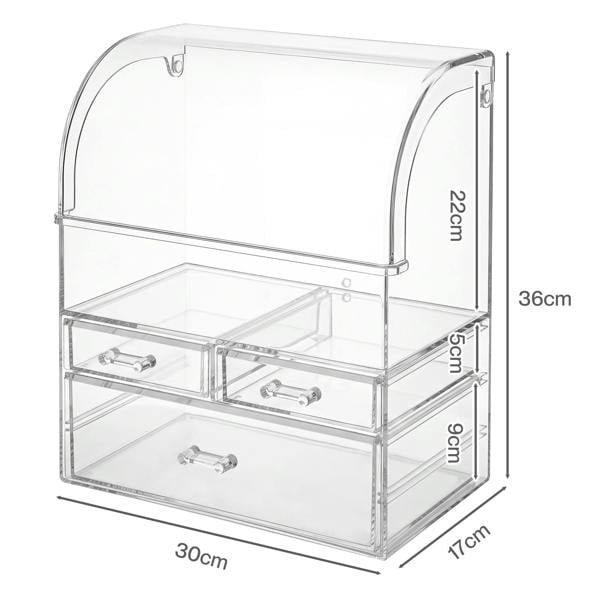 ilus Makeup Storage Organiser keep your beauty essentials neat and organised. It mde from durable materials and designed with multiple compartments and drawers save space while keeping your dressing table tidy. This cosmetic organiser box is perfect for storing makeup skincare and accessories in one place.
