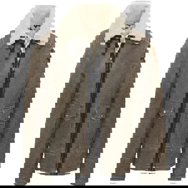 * Functional & Stylish Details: Designed with a soft shearling collar and side pockets, this jacket offers both practicality and a sophisticated edge