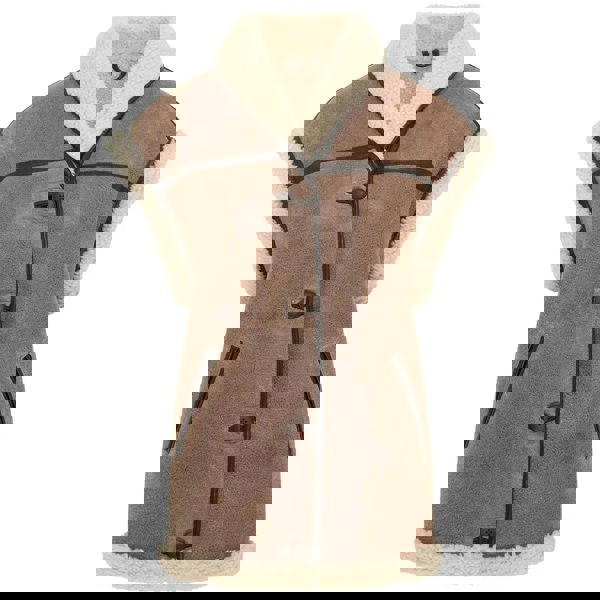 * Premium Shearling Leather Construction: Crafted from high-quality rustic brown shearling leather, this gilet waistcoat offers exceptional durability, warmth, and a luxurious feel