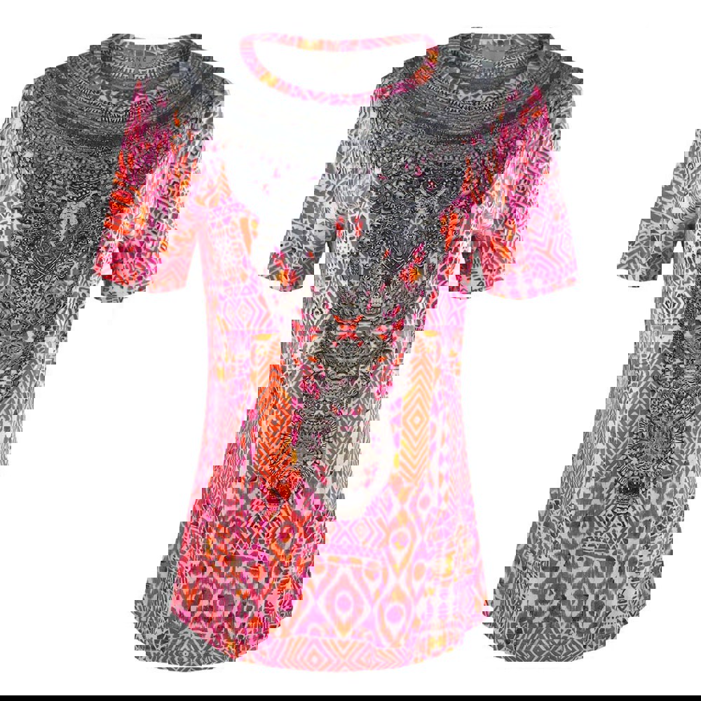 Experience elegance and comfort with the Inoa Fashion Shiraz/1923 Red T-Shirt for women. Crafted from 100% pure silk, this luxurious tee offers a soft, breathable feel that keeps you comfortable all day. Its rich Shiraz red hue adds a bold, sophisticated touch to your wardrobe, perfect for both casual outings and stylish events. The high-quality silk fabric ensures durability while maintaining a lightweight, smooth texture against your skin. Elevate your everyday look with this versatile and timeless piece that combines fashion and comfort effortlessly.