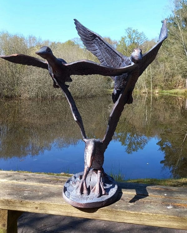 Our unique cast aluminium garden ornaments are hand-made by skilled craftsmen using traditional methods. The hardiness of their construction enables outdoor display whatever the conditions. The Flying Ducks are an impressive garden feature, the metal construction enables you to buy these statement pieces while keeping their weight manageable and prices low. The cast aluminium is durable and strong, withstanding all weather conditions.