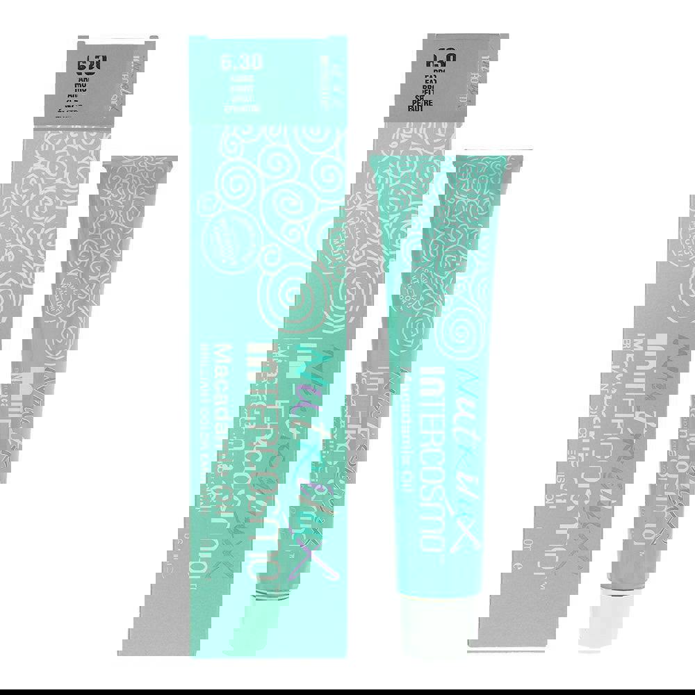 Intercosmo Nutrilux Macademia Oil 6.30 Spelt Hair Colour is a hair colour product in shade 6.30 Spelt. Supplied in a 60ml size, it is part of the Nutrilux Macademia Oil range from Intercosmo.