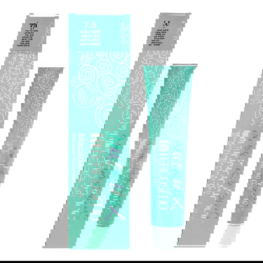 Intercosmo Nutrilux Macademia Oil 7.0 Maple Syrup Hair Colour is a 60ml hair colour product from the Nutrilux Macademia Oil range. The shade is 7.0 Maple Syrup.